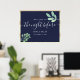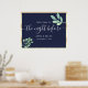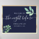 Elegantes, modernes, botanisches, einfaches Gold und Marineblau Das Abendessen The Night Before Probe Begrüßungspakete mit handgeschriebenem Kalligrafieschreiben.