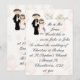 Diese süße Hochzeitseinladung hat einen weißen Hintergrund mit weich gezapften Hochzeitsglocken und ist mit einer Braut und einem Bräutigam ausgestattet. Die Einladung hat zwei Seiten. Die Vorderseite enthält die Einzelheiten der Hochzeit und die Rückseite hat die Details für den Empfang. Das Design wurde von Sketchart26 mit Kunstwerken von Delightful Doodles entworfen.