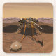 Die Interpretation des InSight-Landers, der auf der Oberfläche von Mars operiert. Die Wissenschaftsinstrumente des Landers suchen nach tektonischen Aktivitäten und Meteoriten-Auswirkungen auf die Mars, untersuchen, wie viel Wärme noch durch den Planeten fließt, und verfolgen das Wackeln des Planeten, während er die Sonne umkreist.