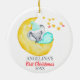 Niedliche Weihnachtsschmuck für die ersten Weihnachtsfeiern, die Sie für einen einzigartigen Sake personalisieren können. Die Aquarellgestaltung ist mit einem kleinen, süßen Elefant, der unter einer Daunendecke versteckt ist und auf dem Mond schnell schläft. Die Vorlage ist für Sie bereit, um Ihren Namen und das Jahr hinzuzufügen, das auf beiden Seiten des Ornaments gedruckt wird. Bitte stöbern Sie in unserem Shop für alternative Designs.