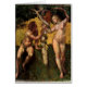Der Fall - Adam und Eva (1509/1511) von Raphael Sanzio, Raffaello (1483-1520) ist ein Deckenfresko aus der Stanza della Segnatura ("Raum der Signatura") im Vatikan. Eine Vintage Renaissance-Ära mit einem feinen religiösen Porträtbild, das Adam und Eva im Garten von Eden zeigt, mit der Schlange, die um den Baum des Wissens von Gut und Böse gewickelt ist. Eine Schlange (oder Schlange) versuchte Eva, der sich des Verbots bewusst war, die verbotene Frucht zu essen.