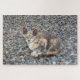Eine wilde graue Straßenkatze sitzt auf grauen Kieseln auf der Kanarischen Insel Gran Canaria in Spanien