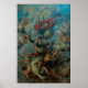 Rubens' Der Fall der Engel der Rebellen ist ein monumentales barockes Bild, das den dramatischen biblischen Moment einfängt, in dem der Erzengel Michael und seine Engel Luzifer und die rebellischen Engel aus dem Himmel verdrängen. Die Komposition ist eine wirbelnde Kaskade aus muskulösen, verstopften Körpern - einige sind noch angelhaft, andere schon monströs - die in Dunkelheit stürzen. An der Spitze führt Erzengel Michael, blau und rot verkleidet, ein Schwert und einen Schild, der die Ladung aus dem Bereich des Lichts leitet, während die Verdammten in das Chaos getrieben werden. Rubens Meisterschaft zeigt sich in der dynamischen Bewegung, der anatomischen Präzision und der emotionalen Intensität der Figuren. Das Gemälde ist voller barocker Energie: dramatische Kontraste von Licht und Schatten, ausdrucksvolle Gesten und ein Gefühl von überwältigender, göttlicher Kraft. Die Zahlen unten, die sich zu Dämonen verwandeln, spiegeln die Folgen von Stolz und Rebellion wider.