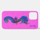 Rosa iPhone Gehäuse mit Grafik eines bunten Meerpferdes, mit Imitaten goldenen Glitzer im Hintergrund. Personalisieren Sie den blauen Namen, um Ihre Bedürfnisse Anzug.