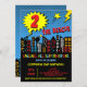 Der farbenfrohe Superheld Two The Rescue 2. Geburtstag Einladung Boy's zwei der Rettung 2. Geburtstag Einladung mit einer Stadtlandschaft im Dunkeln und einige bunte Text. Diese Superhelden-Einladung zum 2. Geburtstag ist ideal für eine Superheld-Geburtstagsfeier.