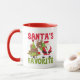 Niedliche, farbenfrohe Weihnachtsgestalterische Tasse mit rot-grünem Text, der den Favoriten des Weihnachtsmanns und den Weihnachtsmann, einen Weihnachtsbaum und ein Rentier, ausliest!