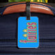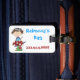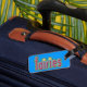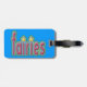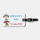 Niedlicher Gepäckumbau für Mädchen mit einer süßen Fee des kleinen Mädchens, die auf einem Krötenschemel, auf der Front, mit Türkis und rotem kundenspezifischem Text sitzt. Bunter grafischer Text, auf dem Türkis zurück, liest Feen. Personifizieren Sie diesen wunderlichen Umbau für einfache Identifizierung des Gepäcks oder des Rucksacks Ihr Kindes.