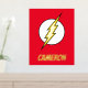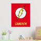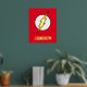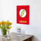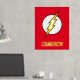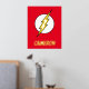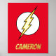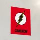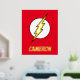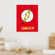 Das ikonische Flash Blitz Logo; ein gelber Lichtblitz, der durch einen weißen Kreis auf seinem klassisch hellroten Hintergrund läuft.