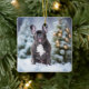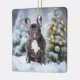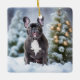 Ein Design mit einem französischen Bulldoggen im Schnee vor einem Weihnachtsbaum