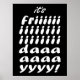 Es ist Freitag!!! Funny Typografy Design mit freitags Redewendungen. Freitagabend lustige Zitate über typografisches Design. Freitagskizzen, lustige Zitate, lustige Typografie. Schwarze Version.