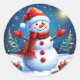 Der fröhliche Schneemann trägt eine Weihnachtsmann Runder Aufkleber