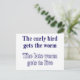 Der frühe Vogel bekommt den Wurm. Postkarte