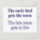 Humores Sprichwort über die Vorteile von Faulheit und Einschlafen! Reads "Der frühe Vogel bekommt den Wurm. Der Spätwurm wird lebendig."