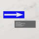 Eine Visitenkarte-Vorlage, die mit einem großen Motiv aus einem weißen Pfeil auf einem farbigen Hintergrund auf einer Seite mit Namen und Kontaktdaten auf der anderen Seite dekoriert ist. Ein neuartiges Design, das die Menschen fragt, was auf der anderen Seite ist. Bereit für Ihre Details, können Sie auch mit zusätzlichen Text oder Bilder angepasst werden.