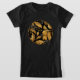 Whimsisches Design mit einer Katze guckt unter schönem goldgelbem Blattwerk hervor.