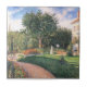 Der Garten von Les Mathurins in Pontoise . Camille Pissarro. Niedliche Sommerlandschaft in warmen Farben. In einem blühenden Garten befindet sich ein großes Haus mit rotem Dach. Eine Frau geht im Garten spazieren. Es sind helle Wolken am blauen Himmel. Reproduktion berühmter Kunstbilder im öffentlichen Bereich.