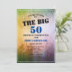 Men's - Die BIG 50 Einladung ist eine moderne, abstrakt blaue Geburtstagseinladung, die Sie ändern und personalisieren können, um für ein großes 50. oder jedes Jahr zu senden, nutzen Sie einfach die "Personalize this template" Funktion, um das Jahr, Namen usw. zu bearbeiten. Der Rücken hat eine "Save the Date" Erinnerung mit blauem Feuerwerk und das Geburtstagsjahr in einem gekachelten Effekt auf schwarzen Hintergrund.