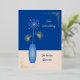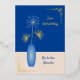 Der gesamte Text auf dieser Karte kann geändert und personalisiert werden. Das Design zeigt eine blaue Vase mit stilisierten Agapanthus-Blume, auf einem schlichten pfirsichblauen Hintergrund mit eleganten goldenen Eckdekorationen. Der Rücken ist auch farbig pfirsichfarben und hat eine verstreute Herzenskulisse, und die Botschaft "Möge Dir Welt Tag ein Lächeln im Gesicht zaubern und alle Wünsche in Erfüllung gehen!" = "Möge die Welt Dir jeden Tag ein Lächeln ins Gesicht bringen und alle Deine Träume erfüllen".