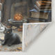 Das Ghost am Ember Hollow Halloween Tapestry mit Poetic Zitat eingebettet in einem rustikalen Raum, in dem Herbstblätter durch das Fenster treiben, eine geistreiche Figur sitzt ruhig am Feuer, in einem weißen Blatt verpackt und weiche Stille. Die Steinherde leuchtet mit Kerzenlicht und Wärme, gießt Fackeln über alte Bücher, gerahmte Erinnerungen und einen Single Kürbis. Eine schwarze Katze mit leuchtenden Augen beobachtet die Schatten und blickt stetig und wissend. Die Luft bläst mit der Hitze des Oktober - wo Komfort und Geheimnis wie Rauch zusammenlaufen.