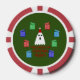 Dieses phantastische Set von Poker-Chips verfügt über einen niedlichen Weihnachtsgeister mit schwarzen Augen und Mund weit offen. Der Geist trägt einen festlichen rot-weißen Hut mit einem Pompom auf der Oberseite. Um den Geist herum gibt es funkelnd rote, blaue und grüne Geschenke. Eine Nachricht in festlich rotem Text unterhalb des Geistes sagt "Der Geist der Weihnachtsgeschenke" in fett gedruckten Hauptstädte. Dieses lustige festliche Design ist für jedes Alter geeignet.