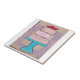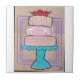 Eine charmante Studie über Muster und Rhythmus, diese dreistufige Tortencollage vereint klassisches Damast, spielerische Streifen und weiche Punkte. Verankert auf einem lebendigen türkisenen Tortensockel, erzeugen die pastellfarbenen Rosa- und Lilatöne eine weiche, einladende Harmonie.
