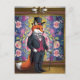 Die künstlerische AI erzeugte einen wunderschönen Gentleman-Fuchs in seinem Anzug und Tophat einen Stock vor einer Blumentapete posiert