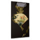 Gemälde eines gekrönten orientalischen Ventilators mit Blumenmotiv. Der schwarze Hintergrund lasse die Farben auf dem Lüfter-Pop des Drucks. Hang das an deine Wand und genieße es!