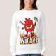 Dieses Sweatshirt zeigt ein lustiges Bild eines Red Devil mit Trident stehend in den Flammen der Hölle. Für eine Frau, die schlecht ist. Die Abbildung auf der Vorderseite dieses Shirts zeigt einen Teufel mit seinem Trident und umgeben von Feuer. Ein Teufel eines Designs, diese Shirts sind böse!