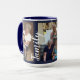 Fertigen Sie diese Tasse mit drei Fotos von Ihren Selbst besonders an. Die Tasse hat Familie und Liebe im eleganten Cursive. Der Marineblauentwurf bringt den Innenraum und den Griff der Tasse zusammen. Macht ein wunderbares Geschenk für eine Großmutter oder große Großmutter!