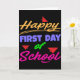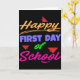 Einige Schüler und Lehrer sind etwas aufgeregt, wieder zur Schule zu gehen als andere. Das ist ein großartiges Geschenk für jeden, der vom ersten Tag des neuen Schuljahres begeistert ist und will, die neue Klasse wieder mit einem Lächeln willkommen zu heißen. Dieses zurück zum Schuldesign ist textbasiert und sagt "Happy First Day of School" in hellen Farben mit Papierfliegern um die Schrift, ein niedliches Schulthema.