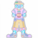 Dieser zeichn ist mit einem blauen Hund mit blauen Flecken, einem gelben Hut, gelben Hosen mit farbenfrohen Akzenten, einem lila Shirt und niedlichen Handschuhen ausgestattet. Er hält eine getöpfte Pflanze, die er gewachsen ist und zeigt seinen grünen Daumen. Der Ausdruck des Hundes ist unglaublich glücklich, und es ist klar, dass er stolz auf seine Pflanze ist. Dieses Kunstwerk ist perfekt für alle, die niedliche und sonderbare Tierkunst Lieben haben.