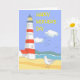 12x18 bewegt die Gruß-Karte Schritt für Schritt fort, die "den glücklichen Tag der Mutter" mit einer glücklichen Küstenszene einschließlich Leuchtturm, Seemöwe und Strand zeigt.