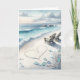 Meine Liebe für dich ist so tief wie der Ozean. Romantischer Valentinstag. TExt innen kann personalisiert sein. Wunderschöne ai Aquarellbild von blauen Ozeanwellen, die auf einem weißen Sandstrand abstürzen. Ein im Sand gezeichnet Herz neben hübschem Meerglas. Im Inneren der Karte ist eine Abbildung von zwei Seestern nebeneinander auf dem Sand.
