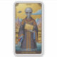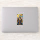 Eine auffallende mittelalterliche Science-Fiction-Illustration eines außerirdischen Besuchers, der in prächtigen Renaissance-Gewändern drapiert ist. Der Entwurf hält eine goldverzierte Tafel in Händen und ist im symbolischen Stil einer traditionellen Tarotkarte gerahmt, was eine anspruchsvolle Interpretation des Unbekannten bietet.