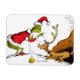 Diese lustige Illustration fängt den genauen Moment ein, in dem der Grinch beschließt, dass sein Hund ein Upgrade benötigt! Der Grinch, gekleidet in seinem vollen, flauschigen Santa-Anzug, bindet sorgfältig ein einzelnes Renntiergeweih auf dem Kopf seines Hundes Max mit einem Stück Schnur oder Garn fest. Der arme Max sieht völlig seinem Schicksal ergeben aus als das "widerwillige Renntier". Diese lustige, klassische Illustration unterstreicht perfekt die absurden und schelmischen Planungen hinter dem berühmten Weihnachts-Coup!