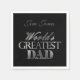 Der größte Vater der Welt Elegante Imitate silberne graue Typografie auf schwarzem Hintergrund Name Vatertag oder Geburtstagspartei Vater, Napkins