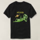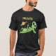 Grünes alien gerade chillin, welches das Friedenszeichen mit einem Planeten und Sternen über ihm auf einem schwarzen Shirt gibt.