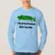 Stellen Sie sich ein hellblaues, langärmeliges T-Shirt mit einem spielerischen, kartoonischen Grasshopper vorne vor. Der Grashüpfer ist ein helles Grün mit einem freundlichen, mit Augen Ausdruck und einem großen Lächeln. Seine großen, ausdrucksstarken Augen sind leicht übertrieben, und seine Antennen kurbeln skurril. Der Körper des Grashüpfers ist schlank mit einfachen, abgerundeten Formen, und seine Beine sind in einer spielerischen Pose gebogen, als ob er bereit wäre, herumzuspringen. Der Grashüpfer hebt sich vor dem hellblauen Hintergrund lebhaft ab und verleiht dem Shirt ein fröhliches und unterhaltsames Ambiente.