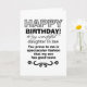 Eine Tochter im Gesetz beweist den guten Geschmack des Sohnes, sagt die Vorderseite dieser lustigen Geburtstagskarte. Der Ausweis wurde mit einer Jurastudentin oder Jurastudentin entworfen, die den Tag ihres Sohnes mit einem Spaß zum Tag ihres Ehefrau verlängern möchte, während sie das Älterwerden um ein Jahr feiert. Die niedliche Botschaft an der Innenseite lässt das süße Kompliment an der Vorderseite in ein neugieriges, aber schockierend humorvolles Selbstverständnis versinken, das den Ehegatten der Tochter oder des Sohnes laut zum Lachen bringen wird.