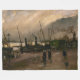 Die letzten Dämmerungserinnern klangen am Amsterdamer Himmel und bluten auf der Leinwand der Wolken Orange und Flamingo Rosa. Hier, an der De Ruijterkade, dem belebten Hafen der Stadt, spielte sich eine Symphonie ruhiger Industrie ab. Das rhythmische Ritzel des Riggings, die gedämpften Schreie der Segler, der sanfte Rauch des Wassers gegen die hölzernen Kais - alles Melodien in diesem nächtlichen Concerto. - Ich, Vincent van Gogh, stand hier, meine Pinselstriche imitierten den Tanz von Licht und Schatten auf dem Wasser. Silhouetten von Schiffen, von denen einige Rauchsteine ihre moderne Zeit verkündeten, schwangen wie schlummernde Riesen. Auf den Pflastersteinen bewegten sich die Figuren müde; vielleicht haben Fischer, ihre Gesichter mit den Linien eines Lebens geätzt, das im Wrestling des Meeres verbracht wurde, oder Hafenarbeiter, die von den mächtigen Hügeln in den Schatten gestellt wurden, ihre Arbeit ein stilles Ballett im verblassenden Licht. — Hier ist eine Pause, eine schwangere Pause zwischen dem Ausatmen eines Tages und dem Inhalieren des nächsten. Ist das das Ende einer Reise oder der zögerliche Beginn einer neuen? Die Antwort wühlt auf der Wasseroberfläche unsichtbar. Ich fasse alles mit lebhaften Farbschlägen, Blues und Orangen als Kontrapunkt zur verblassenden Symphonie der Stadt auf. In dieser Szene warten tausend Geschichten darauf erzählt zu werden; die Geschichten, die vom Wind geflüstert werden, die Geheimnisse, die in den dunklen Rüschen gehalten werden, das Leben, das auf den Gesichtern des Unsichtbaren geätzt wird. Die De Ruijterkade, ein Hafen, der atmet, eine Stadt, die schlummert, eine Geschichte, die gemalt werden gewartet. — Dieses Werk von Vincent van Gogh ist in der Öffentlichkeit in seinem Herkunftsland und anderen Ländern und Bereichen, wo das Urheberrecht Begriff ist das Leben des Autors plus 100 Jahre oder weniger.
