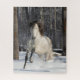 Ein andalusischer Hengst läuft im Schnee in einem Wald in Kanada.