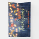 Dieses individuell gestaltbare Erntedank-Banner ist die perfekte Möglichkeit, Feiertagsstimmung und Wärme zu vermitteln. Eine Mischung aus Herbstblättern in warmen Tönen ziert eine blaue Holzkulisse. Die warmen, weißen Lichter der Feen schmücken den Zauber. "Erntedank" in eleganten Kursiven zentriert das Design, während unten ein Serif-Schriftart Ihren Familiennamen oder Ihre Botschaft aufnimmt. Erleben Sie die Freude an einer herzlichen Feier. 🍁 🦃
