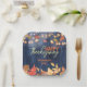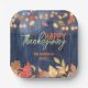 Feiern Sie mit dieser individuell anpassbaren Papiertafel stilvoll Erntedank! Mit einer Holzstruktur mit blauem Farbton ist dieser Teller mit einem Rand aus Herbstblättern und Saitenlichtern geschmückt. Der Text auf dem Teller lautet "Glückliches Erntedankfest" in einem kursiven Schriftart, und kann mit Ihrem Familiennamen in einem kleineren Schriftart personalisiert werden. Die warmen Farbtöne Orange, Gelb und Rot verleihen dem Ganzen ein festliches Ambiente. Ideal für Ihr Erntedank Fest! 🍁 🦃 🍽️
