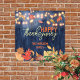 Der warme Herbst trifft auf gemütliche Lichter in diesem individualisierbaren Erntedank Poster. Ein rustikaler, dunkler Holzboden Set die Szene, mit einer Kaskade von weichen Märchenleuchten, die ein sanftes Licht über eine Sammlung von pulsierenden Herbstblättern ausstrahlen. Im Mittelpunkt des Designs steht das elegante, goldgelbe Drehbuch, das "Happy Thanksgiving" lautet, perfekt ergänzt durch die fett orangen Buchstaben des anpassbaren Familiennamen unten. Dieses Plakat ist eine schöne Art, Gäste zu empfangen und die Geschichte Ihrer Familie zu feiern.