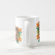 Die Tasse des Kaffees wird mit einem hübschen Herbstpinecon und einem Akkorn mit Blumenausdruck gezeigt. Der Herbst ist ein schöner Text. Passen Sie dieses Objekt an oder kaufen Sie, wie es ist. Lizenziertes Bild