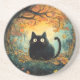 Der Herbst lässt eine gemütliche schwarze Katze fa Getränkeuntersetzer