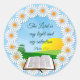 Eine Art Deko Sonnenaufgang-Szene umgeben von Gänsehönen mit einer offenen Bibel und Worten aus Psalm 27:1 "Der Herr ist mein Licht und meine Erlösung" Ändern Sie den Text, wenn Sie möchten.