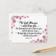 Schöne Kalligraphie Stil biblische Segen aus dem Buch der Zahlen, "Der LORD segne dich, und behalt dir. Der LORD macht sein Gesicht, um dich zu leuchten, und sei nett zu dir. Der LORD hebt sein Gesicht zu dir auf und gibt dir Frieden." Design ist ein Akzent mit einer schönen rosa Blume Abbildung in den oberen und unteren rechten Ecken.