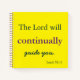 Ein schönes Notizbuch, dieses Element macht ein großartiges Gebetsjournal. "Der Herr wird dich ständig führen" geschrieben in schönen marineblau und lila Buchstaben auf gelbem Hintergrund. Macht ein großartiges Geschenk für einen geliebten.