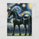 Ein wunderschöner schwarzer Hengst in der Sternennacht im Stil von Van Gogh